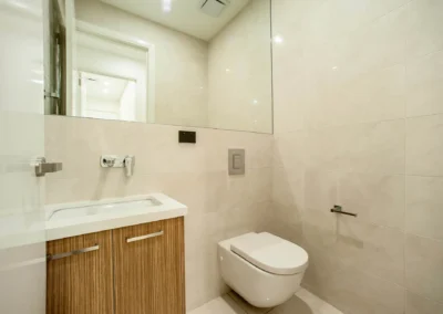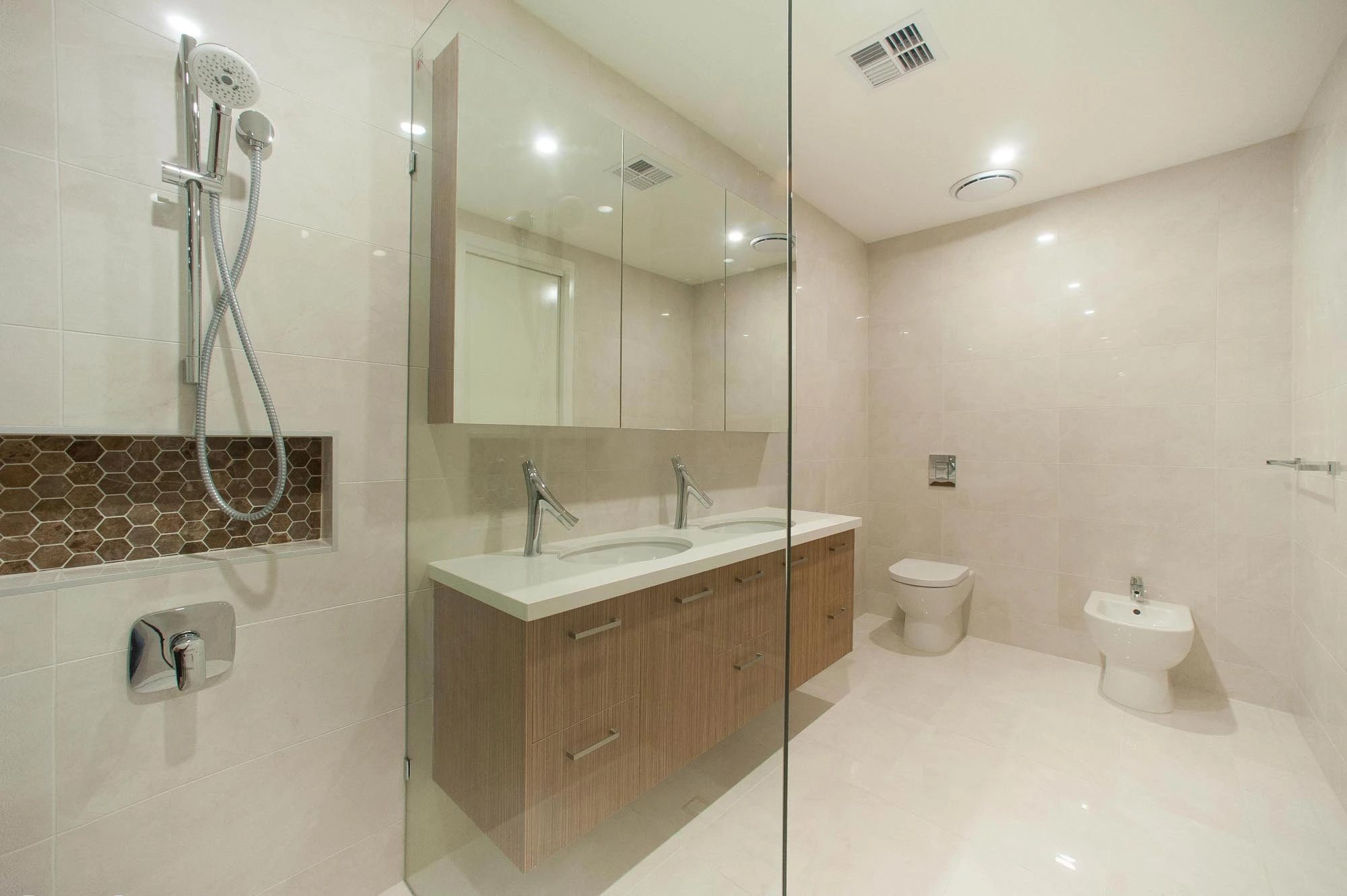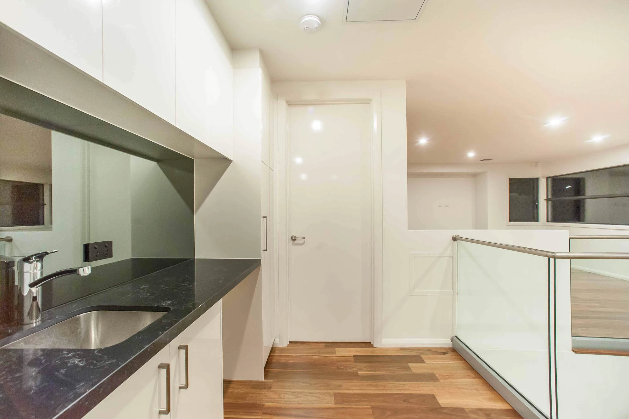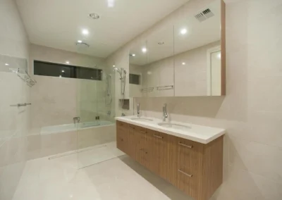 This 6-stars energy efficient house has hydronic slab heating, ducted air-conditioning, double glazed window and rainwater tank for the use of recycle water to toilet and garden irrigation system.